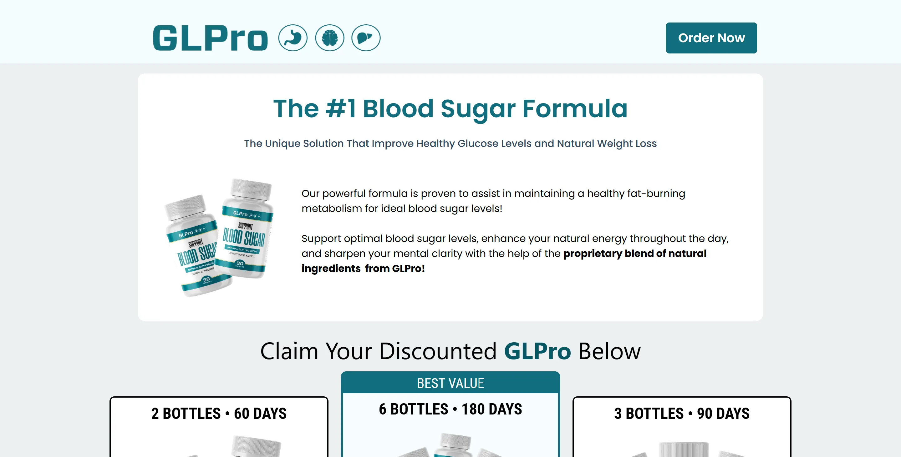 A simple side-by-side look at the pricing shown for GLPro. Larger bundles lower the per-bottle cost.